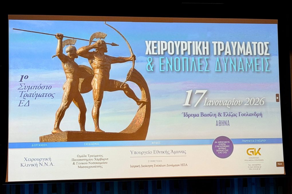 Ο Υπουργός Εθνικής Άμυνας, Νίκος Δένδιας, παρέστη το Σάββατο 17 Ιανουαρίου 2026, στο 1ο Συμπόσιο Τραύματος των Ενόπλων Δυνάμεων, με θέμα «Χειρουργική Τραύματος και Ένοπλες Δυνάμεις», που διεξήχθη στο Ίδρυμα Βασίλη & Ελίζας Γουλανδρή. [...]