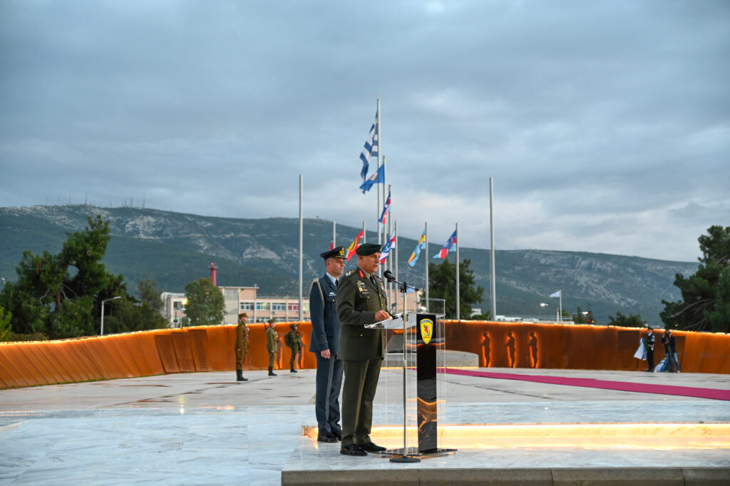 Κατά τον χαιρετισμό του ο Αρχηγός ΓΕΕΘΑ αναφέρθηκε στην ιστορική, εμβληματική, ιερή και συγκινητική περίσταση της ημέρας των εγκαινίων του Μνημείου των Αθανάτων του Έθνους όπως το ονομάτισε, με την οποία αποδίδεται ο ελάχιστος οφειλόμενος φόρος τιμής στους Ήρωες Αξιωματικούς, Υπαξιωματικούς, Στρατιώτες, Ναύτες και Σμηνίτες, που με την υπέρτατη θυσία τους εξασφάλισαν την ελευθερία της Πατρίδος και την τιμή των Ελληνικών όπλων.