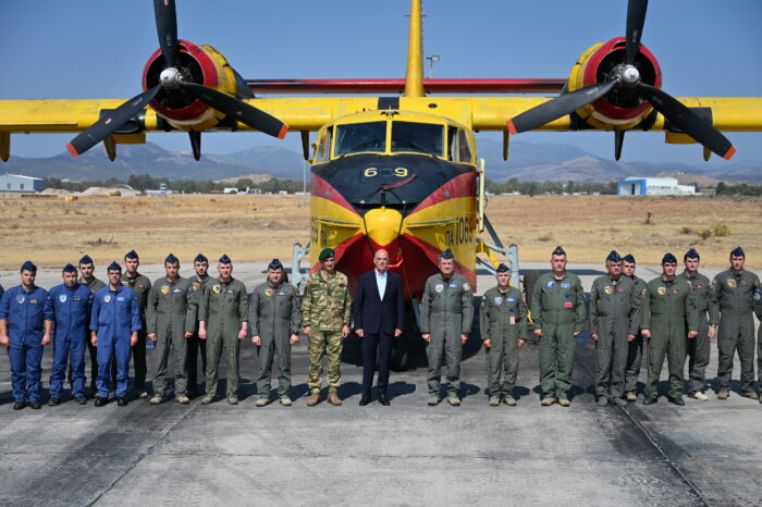 Με τους ήρωες πιλότους των CL-215 της 355ΜΤΜ ο Νίκος Δένδιας