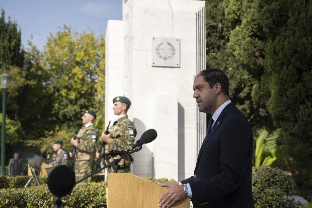 Στον χαιρετισμό του ο Υφυπουργός Εθνικής Άμυνας κ. Ιωάννης Κεφαλογιάννης επεσήμανε: « Από την ίδρυση του, τον Σεπτέμβριο του 1942 έως την αποσυγκρότηση του τον Αύγουστο του 1945, ο Ιερός Λόχος έμεινε πιστός στα εθνικά ιδεώδη και στάθηκε με τόλμη απέναντι στον εχθρό προσδοκώντας μια ελεύθερη Ελλάδα. Ο «Λόχος των Επίλεκτων Αθανάτων» όπως λεγόταν πριν μετονομαστεί σε «Ιερό Λόχο» έδωσε πολλές και δύσκολές μάχες προσφέροντας στην πατρίδα μας υπηρεσίες υψίστης εθνικής σημασίας. Για τις μέχρι αυτοθυσίας συνεχείς τους προσπάθειες, στα πεδία των μαχών και την αξιοθαύμαστη πολεμική τους δράση θα τους τιμούμε και θα τους δοξάζουμε αιωνίως».