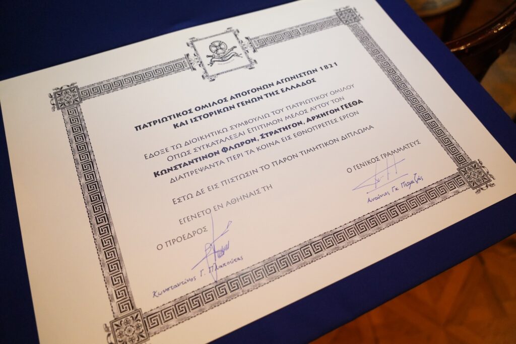 Την Παρασκευή 22 Δεκεμβρίου 2023 ο Αρχηγός ΓΕΕΘΑ Στρατηγός Κωνσταντίνος Φλώρος ανακηρύχθηκε Επίτιμο Μέλος του Πατριωτικού Ομίλου Απογόνων Αγωνιστών του 1821 και Ιστορικών Γενών της Ελλάδος, και του απονεμήθηκε το αντίστοιχο Μετάλλιο, ως αναγνώριση της συνολικής προσφοράς του στην υπηρεσία της Πατρίδος μας, σε εκδήλωση που έλαβε χώρα στην Λέσχη Αξιωματικών Ενόπλων Δυνάμεων (ΛΑΕΔ).