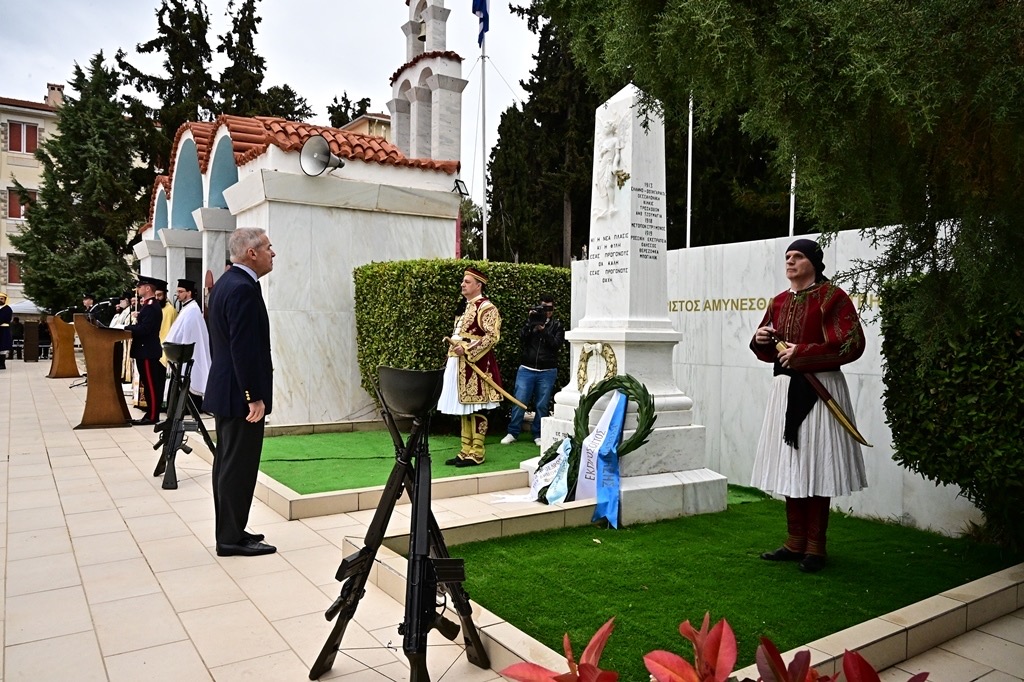 Η τελετή εορτασμού στη ΣΠΖ περιέλαβε δοξολογία, στην οποία χοροστάτησε ο Θεοφιλέστατος Επίσκοπος Σκοπέλου κ.κ. Νικόδημος, καθώς και κατάθεση στεφάνων.